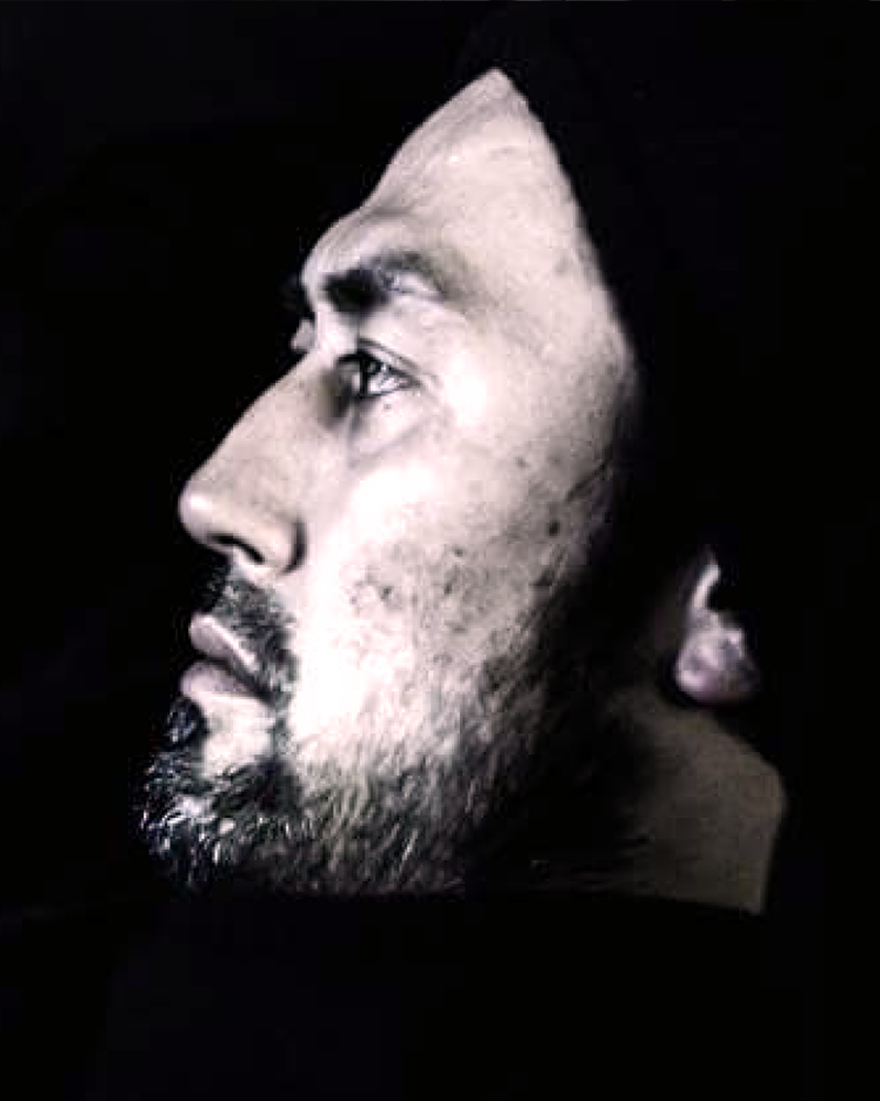 あごのサイドあたりの 膨らみ部分にスティックをなでつけ、 外枠のフレームを固定